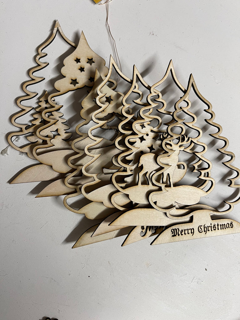 This festive bundle features 6 layered 3D lantern designs in the shape of a Christmas tree, beautifully illustrating various winter scenes like reindeer, Santa’s sleigh, snowy houses, and a Christmas train.